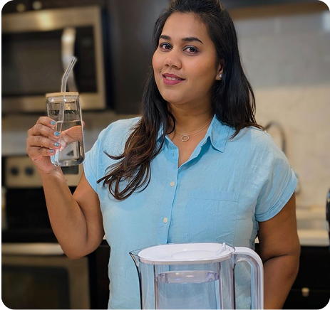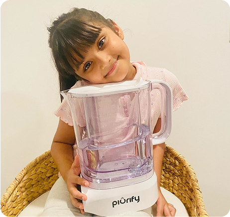 The Alchemy® Water Pitcher eliminates 99.9% of heavy metals, PFAS, and microplastics.